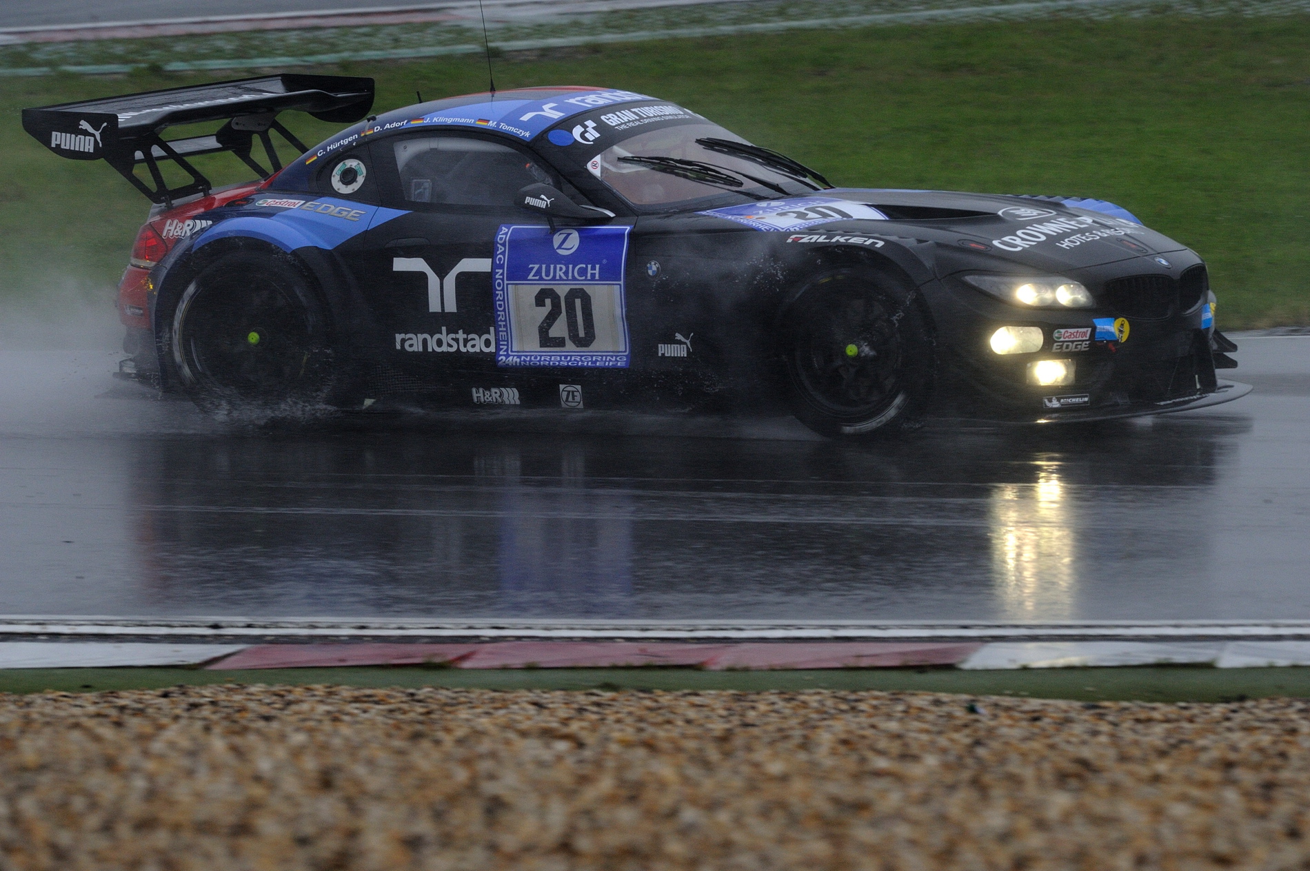 Martin was first into the fray for BMW Sports Trophy Team Marc VDS, starting from fifth and soon cutting through the field to lead in the rain. On lap 44 he pulled into the pits with a lead of about 20 seconds to hand over to Buurman. Bas Leinders (BE) in the number 26 car was also coping excellently with the difficult conditions, and had climbed as high as third. However, he was hit by another car and went into the crash barriers in the Bergwerk section on lap 41. His BMW Z4 GT3 was so seriously damaged that he was unable to continue. Up until that point, Leinders had shared driving duties with Henri Moser (CH), Markus Palttala (FI) and Gransson.